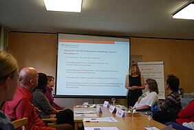 Zu Beginn stellte Waltraud Hanf vom Arbeitgeberservice der Agentur für Arbeit Heidelberg aktuelle Fördermöglichkeiten im Bereich Altenpflege vor. Diese richten sich sowohl an Beschäftigte in Pflegeeinrichtungen als auch an Arbeitslose, die sich für eine Tätigkeit im Pflegebereich interessieren. Das Programm WeGebAU („Weiterbildung Geringqualifizierter und beschäftigter Älterer in Unternehmen“) zielt darauf ab, Helfer/innen zu Fachkräften zu qualifizieren und dadurch ihre Beschäftigungschancen zu verbessern. Mit den Programmen „The Job of my Life“ sollen Arbeitnehmer aus EU-Staaten und mit „Triple Win“ Personen aus Drittstaaten für eine berufliche Tätigkeit in Deutschland gewonnen werden. Die beiden Angebote ergänzen die 2013 unter anderem von der Bundesagentur für Arbeit (BA) gestartete „Ausbildungs- und Qualifizierungsoffensive Altenpflege“ zur Fachkräftesicherung in der Altenpflege.